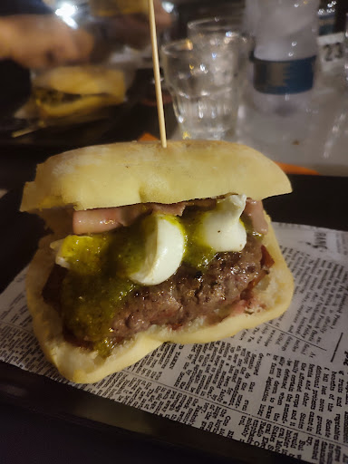 Read moreSono stata in questo pub per le ottime recensioni lette e devo dire che non è male. Posti a sedere sia all'esterno che all'interno, il terrazzino è comodo e riservato. Il servizio davvero ottimo, camerieri davvero gentili e cordiali. Si sono mostrati inoltre pet friendly perché sono venuta con la mia cagnolina, non hanno avuto nulla da dire e addirittura hanno portato una ciotolina con dell'acqua cosa non da poco. Ora passiamo al cibo: ho ordinato delle patatine fritte come antipasto ma non mi hanno entusiasmato in quanto non erano fatte sul momento ma cotte precedentemente e poi solo scaldate infatti risultavano un po' gommose. I panini invece veramente ottimi, ho provato il panino del mese con i peperoncini verdi, salsiccia e formaggio davvero ottimo sia per la cattura della carne che per gli ingredienti. Stesso discorso per il panino con hamburger, mortadella, pomodori secchi e ciliegine di mozzarella...