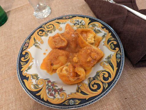 Read moreIncuriosito dalle recensioni e presi dalla fame ci siamo fermati a mangiare in questa trattoria. È stato uno dei pranzi migliori della mia vita a mani basse. Partiamo subito dal conto: circa 50 a coppia per un antipasto condiviso, 2 primi , 2 dolci più acqua e 2 bibite e servizio. L'antipasto della casa prevedeva formaggi e salumi, i primi maltagliati cozze e olive e pomodori/ ravioloni con ricotta e limone con ragù e i dolci infine sformatino di cioccolato e torta al limone. Ciò che veramente mi ha colpito sono la dedizione e la passione dei proprietari nella scelta scrupolosa e azzeccata degli ingredienti: uno ad uno. Tutti gli ingredienti hanno una storia che viene meticolosamente raccontata durante il servizio. Locali così meritano il pieno, sempre. Poi inutile aggiungere che se servi prodotti veramente locali, freschi e di stagione il sapore e quindi il livello del piatto aumenta. Lati negativi? Ovviamente qualcosina da suggerire c'è: magari la sala sarebbe da rendere più affine alla cucina servita invece sembra ferma agli anni 80 e non dà al locale il giusto valore e infine un pochino di velocitá in più nel servizio non guasterebbe. Da ritornarci il più presto possibile. Foto non pervenute perché ho...