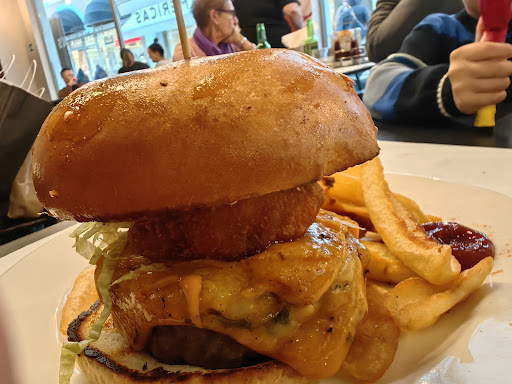 The biggest minus is ordered food. I asked for a burger with medium made meat, but I got burned meat through and through. The same thing was with other burger. Chicken nuggets for our kid were totally dry. From outside burgers looked good, until we started to eat.