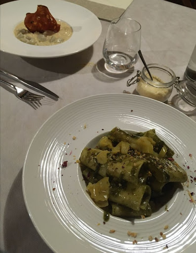 Read moreGreat experience. The restaurant was warm and inviting, as were the people. The server was playful with our son, and the manager spoke excellent English (though we spoke Italian with our server). Menus were available in Italian and English and perhaps more. They had a nice selection of unique, regional dishes, plus pizza and even a children's menu. I got the spaghettone with pheasant ragout, while my wife got roe deer ravioli with leek cream. As an appetizer, we got black rice with zucchini which had a delicious sweet sort of chili sauce. To drink, I the draft beer (la birra alla spina) which was so good. We finished it off with tiramisu and a couple of caffè. The food was elegant and elevated, but very much comforting. Everything was delicious and we waited away very happy...