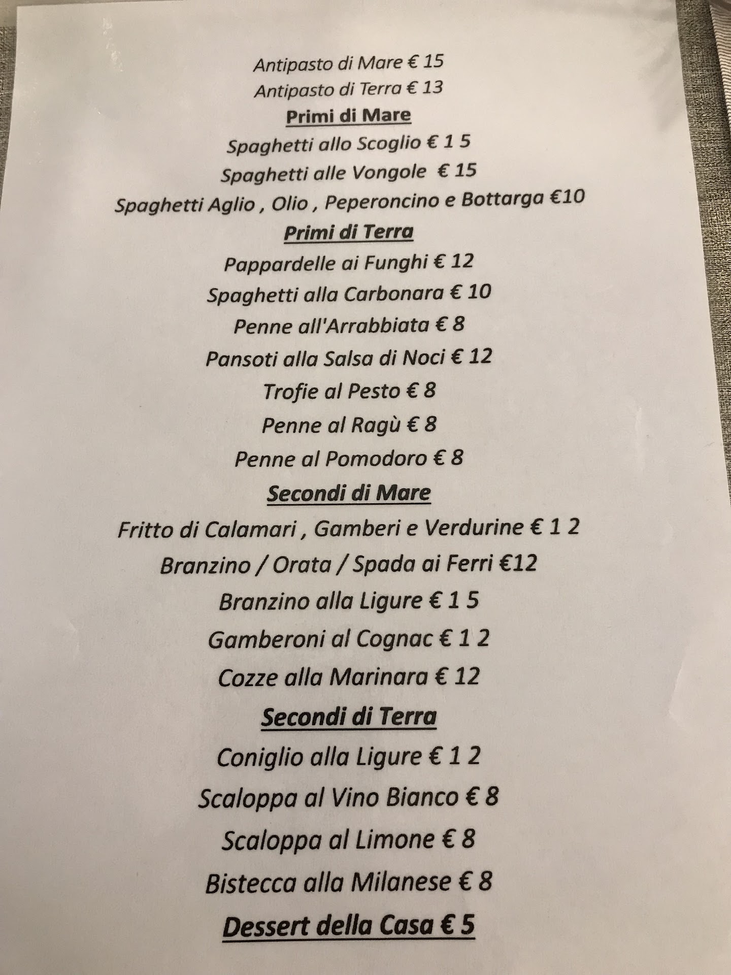Read moreTrattoria trovata grazie ad un equivoco (il nome simile ad un altro ristorante), si è rivelata la migliore sorpresa che ci si può aspettare da un posto che non si conosce...la "svista" sul nome infatti, ci ha fatto entrare nel locale consapevoli di aver prenotato (con una app), ma una volta scoperto l'equivoco, nonostante il locale fosse pienissimo il titolare, con uno spostamento dei tavoli (senza disturbare nessuno), ha "creato" un altro tavolo per me e mia moglie con tempi di attesa pari allo 0....passiamo alle pietanze: vista la località, le nostre scelte sono ricadute sui piatti a base di pesce (Il menu comunque presenta anche piatti di carne). Sia i primi che i secondi si sono rivelati tutti gustosi e preparati con cura: dai classici della tradizione a piatti più ricercati, ogni portata si è dimostrata squisita ed eccellente, accompagnata da una simpatia grandissima da parte dei titolari, che rendono l'ambiente ancora più gioviale e allegro. Il rapporto qualità/prezzo è ottimo....praticamente, si crea la stessa atmosfera di una cena a casa di amici...con la mamma ai fornelli... Lo consiglio fortemente, anche a chi solitamente ha problemi di digestione (i condimenti non sono pesanti). Sono ammessi anche gli animali (eravamo col nostro cane). Grazie mille per l'accoglienza, alla...