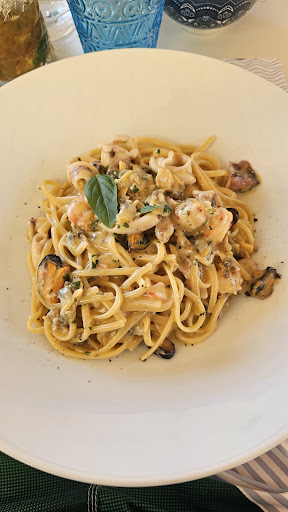 Il pasto è stato impeccabile: linguine alle vongole saporite, un Moscow Mule perfettamente bilanciato, e un tiramisù al mango semplicemente divino. Tutto fatto in casa, con raffinatezza, generosità e soprattutto con il cuore. Il proprietario è una persona davvero simpatica e accogliente. Mi sono sentito immerso nella vera dolce vita — proprio ciò che desideravo.