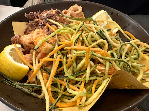 Read morePosto e presentazione dei piatti molto particolari. Servizio veramente scadente, abbiamo mangiato in una veranda al gelo costrette a chiedere di accendere una fonte di calore che però era interna al locale e per altro tarata su 19 gradi quindi l’unica cosa aumentata sono stati probabilmente i consumi del locale, ma non di certo i gradi nella stanza e personale poco preparato sui piatti e sull’italiano, cosa molto pericolosa per chi ha intolleranze, non sapeva nemmeno che tipo di patata ci stesse dando. Bella l’idea degli hamburger di pesce, ma sapori molto insipidi, sconditi, e anche il pane era freddo per di più servitù con delle patatine dolci e non salate. Roll di polpo buono, ma nel menu non era segnalato che fosse piccante, altra cosa che non va bene! A fine pasto chiediamo un sake bollente alla prugna per cercare di scongelarci e ci arriva ok caldo, ma non alla prugna, più che imbevibile non saprei che dire. Forse converrebbe concentrarsi meglio su un solo tipo di cucina, ma fatta bene piuttosto che avere piatti di tutto il mondo ma di scarsa qualità! Tutto questo per 41€ a testa senza vino, senza dolce e senza caffè! Onestamente sento di averli buttati… troppo caro per quello che offre! Non basta avere un bel locale, in Italia ci piace...