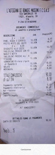 Food was pretty good, especially because they used fresh pasta instead of simple spaghetti or tagliolini, but… The kiddy meals and how these were handle was a real fraud… We order 2 kiddy menus for the 2 kids including spaghetti alle cozze (one each) Contorno (one each) Dolce (one each) Drinks (one each) For a great price of 10€ in total each kid. As the kids were quite full after the 2 spaghetti and seeing that they didn’t bring the contorni though we had all finished eating for a while, we said ok, don’t bring the contorni (1 plate of fries and 1 of aubergine) as it would be a waste, but can we order the dolce for the kids? Sure they said, and told us what they had. We ordered ice cream and meringata. As I received the bill, I was told that the kiddy menu no longer applied as we didn’t eat the contorni and we ordered meringata as that was not applicable for kiddy menus, which of course they had not mentioned when we ordered it. Ok, we only paid 5€ extra for the meringata, but that was...