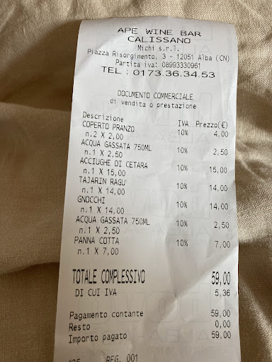 Overall a 60€ lunch in a small city like Alba seems a little over priced...