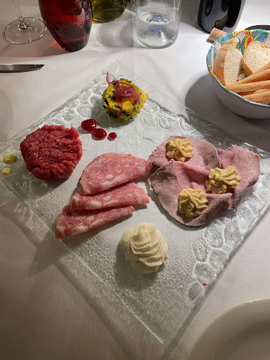 Read moreThis is a small hotel establishment with a restaurant. We only used the restaurant facilities. There was an unpromising entrance, through what seemed to be the family dining area with a TV and a little bar [and a pile of dirty plates on the table!], down a dimly-lit corridor, and then into an open-air courtyard, where the restaurant tables are located. We chose 'mixed cold garden vegetables' as antipasto; this was a complete disappoinment, as the vegetables consisted of no more than a tablespoon of chopped tomatoes, onions and (maybe) carrots, but then topped with a quartered bolied egg and a spoonful of tinned tuna. So, straight away we found the menu was misleading and that tinned produce formed part of the kitchen's inventory. A tagliatelle with veal ragu was tasty, a local grey rabbit was well cooked and full of flavour. The desserts were good and nicely presented. There is a comprehensive wine list with a lot of top end choices - too top heavy for a basic restaurant like this one, in my view.|| On asking for the bill we were directed back out to the family room and bar, where Madame kindly offered us a digestivo while the bill was prepared. I am sorry to say that the 'bill' was simply worked out on a calculator, and we were just presented with a total. [82 Euros for 2]. Personally, and I think this applies to most diners, I like to see an itemised bill. I have been to places before, where you are 'charmed' upon leaving with a little drink, and then just quoted a 'total price'. In my view this is not good restaurant practice.|| Overall, the food and service was acceptable and pleasant, but no more than standard for a town of Alba's size and...