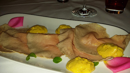This is a small hotel establishment with a restaurant. We only used the restaurant facilities. There was an unpromising entrance, through what seemed to be the family dining area with a TV and a little bar [and a pile of dirty plates on the table!], down a dimly-lit corridor, and then into an open-air courtyard, where the restaurant tables are located. We chose 'mixed cold garden vegetables' as antipasto; this was a complete disappoinment, as the vegetables consisted of no more than a tablespoon of chopped tomatoes, onions and (maybe) carrots, but then topped with a quartered bolied egg and a spoonful of tinned tuna. So, straight away we found the menu was misleading and that tinned produce formed part of the kitchen's inventory. A tagliatelle with veal ragu was tasty, a local grey rabbit was well cooked and full of flavour. The desserts were good and nicely presented. There is a comprehensive wine list with a lot of top end choices - too top heavy for a basic restaurant like this one, in my view.|| On asking for the bill we were directed back out to the family room and bar, where Madame kindly offered us a digestivo while the bill was prepared. I am sorry to say that the 'bill' was simply worked out on a calculator, and we were just presented with a total. [82 Euros for 2]. Personally, and I think this applies to most diners, I like to see an itemised bill. I have been to places before, where you are 'charmed' upon leaving with a little drink, and then just quoted a 'total price'. In my view this is not good restaurant practice.|| Overall, the food and service was acceptable and pleasant, but no more than standard for a town of Alba's size and...