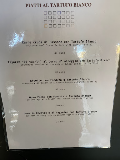 Read moreWe came to alba because we wanted to eat truffle. We wanted to eat white truffle and hoped that they have it. We found out that the white truffle season starts im October. So we ordere the dishes with black truffle. I had tartar with truffle and tajarin with mushrooms and truffle. My tartar was good but the addiotion of 10.- for the black truffle ( that tasted like nothing) was just not justified. Than I had very plain unsalted tajarin wit mushrooms and truffles. The whole dish was was a huge disappointment. I really expected more of a one star michelin restaurant. Especially the taste of the truffle were really disappointing. There are way better restaurants that cost less and taste way way better. You are in italy man the food is not that expensive and even if not it should be...