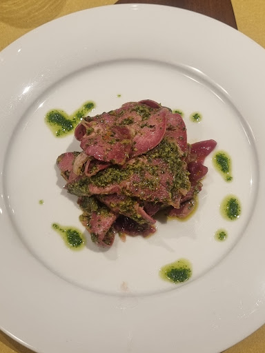 Read moreI heard this is one of the delicious local restaurant. When I went inside there are a lot of bookings in the restaurant so the staff asked me to stay only 80 minutes. I didn't book so thats normal. I tried the veal tongue and the tajarin with truffle. The tongue dish was delicious. I would like to make it back home. But the tajarin with truffle was very disappointing. I can't smell and feel the smell of strong truffles.... It just tasted like normal mushrooms. I didn't really like the attitude of the staffs. They were polite to the customers who order expensive menus. But to me they speak like they are tired and don't want to talk with me at all. I spent around 40 euros in this restaurant and I feel it doesn't worth the price. I wouldn't recommend to go if I am going to the restaurant alone and ready to spend more than 50 euros per person.