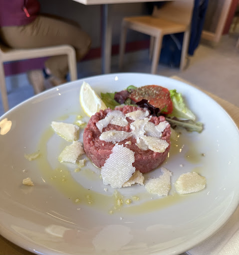 Read moreSiamo entrati che avevano appena iniziato il servizio del pranzo e abbiamo trovato subito posto nel locale. L’interno è ben curato, molto luminoso e apparentemente pulito. Abbiamo ordinato due ravioli del plin ripieni di verdure e carne: uno condito con burro e tartufo e l’altro condito con panna e prosciutto. Sono molto buoni, forse leggermente troppo cotti ma è un’opinione personale. Abbiamo anche ordinato una porzione di carne cruda e quella davvero vale la pena. Arrivando al servizio c’è da dire che risulta un po’ frettoloso e poco curato. Il personale è cordiale e sorridente ma il tutto è disordinato perché è capitato che persone arrivate prima siano state servite per ultime. In ogni caso se volete un assaggio della cucina piemontese senza spendere tanto vale la pena provare...