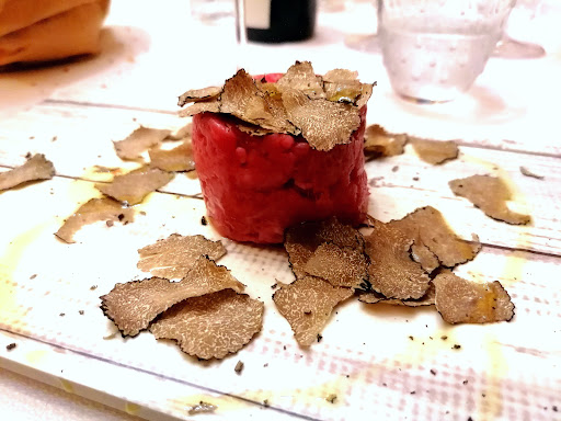 Read moreNon ero mai stata, mi sono trasferita da poco ad Asti e conosco ancora meno Alba. Ma se mi capita tornerò in questo ristorante molto volentieri: ambiente accogliente, discreto, arredato con molto gusto e stile, tavole apparecchiate alla perfezione, personale gentile, sorridente, non invadente, in una parola professionale con eleganza. Io sono intollerante al glutine e adoro la pizza, quindi quando voglio capire se un ristorante che non conosco ha un buon impasto gluten free e dei buoni ingredienti, prendo sempre la prima volta una classica margherita. Perché essendo la più semplice è quella che permette di apprezzare meglio le caratteristiche che deve avere una buona pizza e ben fatta, dall'impasto, dalla qualità e bontà degli ingredienti e dalla cottura, altro importante elemento. L'ho trovata molto buona e molto digeribile, il che mi fa pensare anche ad una lievitazione che supera le 12 ore ma potrei sbagliare. Sicuramente non meno di 12 ore. Ottimi gli ingredienti: il pomodoro e la mozzarella buonissimi. Avrei preferito due foglie di basilico ma noto che in tante pizzerie è una scelta precisa quella di non utilizzarlo come ingrediente. Meglio non usarlo piuttosto che usarne uno di qualità scadente. Ottimo il dessert: la mousse di yogurt greco ricoperta di glassa al limone....davvero sfiziosa! Ah, altro elemento per me imprescindibile in un ristorante: la pulizia e il comfort dei suoi bagni, e in questo ristorante ho trovato una pulizia impeccabile e tutto l'arredamento nuovo o comunque molto ben tenuto. Non posso esprimermi sulle altre pietanze ma non mancherò di farlo non appena ne avrò occasione! Comunque per il momento mi interessava trovare una buona pizza gluten free e ci sono riuscita molto bene!! Ah dimenticavo, ottima location con ampissima possibilità di parcheggio...