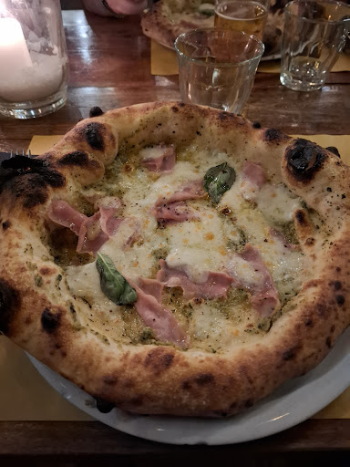 Read morePrima volta in questo locale. Patio esterno molto bello, locale arredato con gusto e originalità in entrambi gli ambienti. Comanda presa alle 20.49. Antipasti: crocchetta alla carbonara molto gustosa, particolarmente apprezzabile la fettona di bacon croccante; fiori di zucca al sale un po’ deludenti in quanto piccoli, sottili e la panatura (presumo con panco) è l’unica cosa che si sente, personalmente il sapore del fiore di zucca non l’ho sentito affatto. Ottimi invece i supplì. Da qui solo note dolenti; abbiamo ordinato 5 pizze arrivate dopo circa un’ora di attesa e per di più con i cornicioni completamente bruciati e infatti nessuno li ha mangiati (Io sono stato fortunato in quanto la mia Amatriciana era ancora salvabile), gran peccato perché l’impasto era ottimo e i condimenti anche. Alla nostra rimostranza il personale ha addotto come giustificazione un problema con la legna ma, sinceramente, non può essere un cliente a subire gli errori di un esercente o di un fornitore specialmente perché abbiamo pagato tutto (giustamente) per intero, non ci è stato applicato alcuno sconto. Conto tutto sommato onesto ma il servizio è stato anch’esso deludente in quanto dopo aver sparecchiato la tavola nessuno è venuto a chiederci se volessimo altro tipo caffè, amari o dolci (per esempio io un caffè lo avrei preso ma per forza maggiore siamo passati direttamente al conto). Per ora 3 stelle ma penso che tornerò per dargli un’altra chance sperando di...