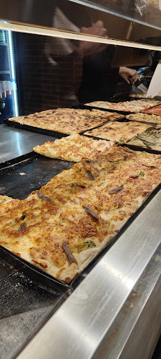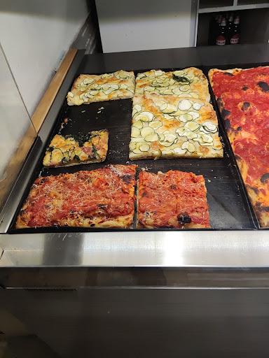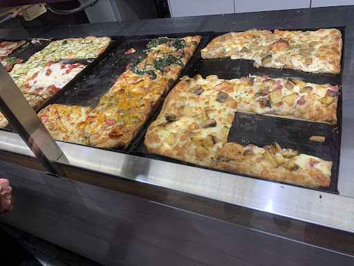 Ho deciso di provare questa pizzeria, ho aspettato un 10 minuti prima di poter ordinare perché pieno di persone. Tantissime pizze da poter scegliere, ho preso una mortadella e patate e una prosciutto che sono state fantastiche. Locale pulito e molto ordinato. Mi ha stupito molto lo staff dietro al bancone, nonostante la coda folle di persone ad aspettare fuori non hanno perso la pazienza, e servito tutti con il sorriso in faccia. Non si sono fermati un attimo, hanno fatto fuori 5 teglie di pizza mentre mangiavo dentro e ne sfornavano altre di continuo. Mi piace godermi i locali e chi merita recensire per aiutare gli altri utenti Google. Vi garantisco che mangiare qui è una scelta ottima che non vi farà pentire, ed uscirete con la pancia piena e soddisfatti. Meritano 5 stelle per il cibo, la felicità sul volto e per il locale ben tenuto e pulito....