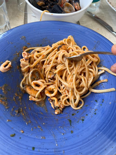 Abbiamo ordinato tre primi di pesce che ci sono stati serviti inizialmente tutti insieme in una ciotola unica. Solo dopo nostra richiesta sono stati divisi, ma le porzioni sono risultate piuttosto ridotte. Inoltre, la pasta era fredda e il pesce non ci è sembrato particolarmente fresco. Solo due piatti (uno spaghetto per mia figlia e uno per il suo ragazzo) sono stati apprezzati.