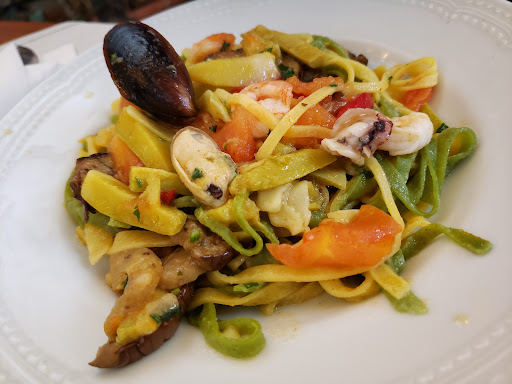 Based on reviews saying this is a local spot (which appear to be true as the restaurant was full of locals), we visited hoping for a simple meal. Unfortunately, the only delicious item was a soft sheep cheese that came with the tomato/rucola salad. I ordered some pasta meant to be served with zucchini, aubergine, fresh tomato, and shrimp+prawns - but it came with no aubergine and mussels + calamari instead (an unpleasant surprise for me). The pasta itself was quite soggy (even for fresh pasta) and the sauce was incredibly salty, not to mention that the few shrimp included tasted frozen/not fresh (I tried one and it was not good) - ultimately I was unable to eat the dish. I left the restaurant almost as hungry as I arrived. I did inform the waitstaff but they were not very sympathetic (I was not offered a replacement meal nor did they offer to remove the dish from the bill). I was pretty disappointed with this culinary experience, even though it appears that local residents adore this place and the wait staff seemed nice overall. Personally, however, I would never return here...