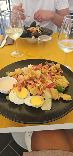 Posto che colpisce a primo impatto, la Location è direttamente sul mare e fa servizio anche di lido. Tuttavia, l'esperienza avuta al ristorante è stata breve e piuttosto spiacevole. Ci è stato dato un tavolo sotto una pergola non del tutto ombreggiata, seppur durante la prenotazione ho richiesto un tavolo ombreggiato e adatto al mio cane. Non ci si poteva appoggiare al tavolo perché il vetro si sollevava. Veniamo al cibo, il voto è insufficiente. Prezzi altissimi e una qualità e un servizio discutibili. Tra i piatti ordinati ci sono i tagliolini al nero di seppia con tartar di gambero e i tagliolini ai frutti di mare. Quest'ultimi sono stati ordinati in due varianti: con e senza prezzemolo. Quelli senza prezzemolo erano sconditi, era pasta in bianco con acqua dei frutti di mare. Qualità dei frutti di mare buona, ma la pasta di per sé sgradevole. Il piatto con il prezzemolo era giustamente condito. Fatto notare ciò al cameriere e in cassa, il commento avuto è stato semplicemente "mi dispiace" e io altrettanto semplicemente vi recensisco il locale con la mia esperienza avuta, decisamente sotto le mie...