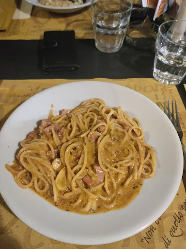 Read moreHo dato una stella perché di meno non si poteva ... Arriviamo in questa trattoria per caso, fuori oltre al menù alla carta c e indicato la possibilità di scegliere tra due menù uno di carne e uno di pesce a 25 € .... Chiediamo se ci fosse disponibilità e il cameriere ci fa accomodare dopo cinque minuti, una volta al tavolo ci avvertono che purtroppo stavano finendo tutto in cucina e quindi i menù non erano disponibili. Decidiamo quindi di ordinare alla carta e il cameriere ci dice che e possibile ordinare solo un piatto a testa tra quelli alla carta .... Va bene cerchiamo di capire la difficolta e ordiniamo 4 fritti misti , un petto di pollo e due primi (1 piatto a testa ). Dopo poco arriva 1 primo (su sette persone l unico a mangiare ) dopo una ventina di minuti arriva il petto di pollo tutto tra un black out dopo l altro ... Ad un certo punto arriva il cameriere a comunicarci che non era possibile più fare uscire i fritti misti a causa di un problema tecnico,ne escono nel frattempo due persone le persone al tavolo alle nostre spalle (un piatto con dentro cinque calamari di quelli grossi congelati che il signore ha mandato in dietro in quando immangiabili perché erano ancora congelati ) per cui forse e meglio che non sia nemmeno arrivati ... In tutto questa situazione al quanto inversomile decidiamo di alzarci e andare alla cassa a pagare gli unici due piatti di sette arrivati . La cassiera ci chiede la conferma di cosa avessimo preso: la pasta una birra e l acqua (ha avuto anche il coraggio di chiedermi se fosse da un litro o da mezzo ) fa il conto e non toglie nemmeno un euro (conto di 21 € paghiamo con 50 e mi chiede pure l euro). Cmq per concludere se passate da Albenga evitate questo posto ...poca serietà , cibo scadente(anche per quello visto e sentito da altri tavoli) ...l unica cosa buona forse il pane ...ci può anche stare un problema in cucina o di rimanere senza scorte alle otto di sera, ma almeno non prendere pure in giro il cliente...
