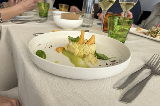 We went 3 days in a row for lunch and tried the different options. Weekday lunch, house guest fixed menu, and a la carte lunch on weekends. The service is very professional and attentive. Very friendly welcoming. You will be seated on a terrace at the beach overlooking the beach umbrellas with a view out to the island. Elegant. Weekdays some business lunch guests. The residence above the restaurant was fully booked, but most guests prefer dinner. Oh yes, the food was excellent. Not a huge selection of dishes, but all seasonal and fresh. Fish and seafood of course. Review the photos and you see the hot items. The portions a la carte are big and can be shared in two. Otherwise you cannot eat 3 to 4 courses. The set menu for house guests and the business lunch portions are perfect for a full lunch that doesn’t require the afternoon nap. The wine recommendations were all excellent. Not too costly either. Overall a wonderful experience. We...