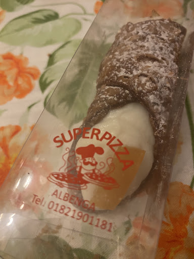 Read moreHo conosciuto Superpizza tramite il passaparola e devo dire che sono rimasto pienamente soddisfatto dal loro servizio e dall ottima pizza che preparano. La prima volta sono andato direttamente da loro ad ordinare e poi ho portato la pizza a casa ma gia dalla seconda volta ho fatto direttamente l ordine da casa. L assortimento di pizze e molto vasto ma e possibile anche ordinare vari tipi di farinata e focaccia (tipo Recco). La ciliegina sulla torta (sorpresa inaspettata ma molto molto gradita) sono stati i cannoli siciliani veramente "spaziali" Per quanto riguarda la consegna a domicilio basta telefonare e fare l ordine e in pochissimo tempo arrivano con le pizze direttamente a casa senza alcuna variazione di prezzo. Esatto! La consegna a domicilio e GRATUITA. Mi sembra di avere capito che gli ultimi ordini della sera e possibile farli entro le 22.00. Il personale e molto cordiale ed alla mano e i prezzi sono onesti. Ultimo particolare ma non di sicuro da trascurare, la cottura e fatta in forno a legna. Sicuramente mi serviro ancora da loro e consiglio a tutti di provare almeno una volta i loro menu ed il loro servizio...