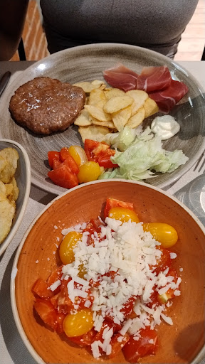 Io ho provato il cibum macelleria risyogrill con amici e ci siamo trovati benissimo. Abbiamo ordinato una tagliata di manzo con salsa al pepe verde e una porzione di riso basmati al curry, una cotoletta di pollo con salsa barbecue e una porzione di riso venere alle verdure, e due bicchieri di vino rosso. Tutto era squisito e abbondante, la carne era morbida e succosa, il riso era profumato e saporito. Il servizio era rapido e cortese, il conto era onesto.