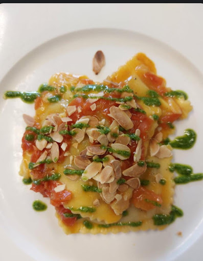 Ordiniamo antipasto per 4 (nodini, bruschetta e capocollo), tutto molto buono e di qualità, e 4 primi, 2 orecchiette caserecce al ragù con polpettine, 1 ravioli ai crostacei (non ricordo la salsa) e 1 tortello ripieni di bufala In salsa di zucca.
