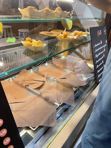 I panzerotti in sé erano buoni, impasto sottile, morbido dentro e croccante fuori, anche gli ingredienti sono risultati saporiti e di qualità. In definitiva, un buon posto per mangiare qualcosa (più o meno) al volo purtroppo non vi potete aspettare un servizio adeguato (p.s. Lo staff non è stato disposto a tagliare il panzerotto per un bambino, potrebbero essere più disponibili per queste...