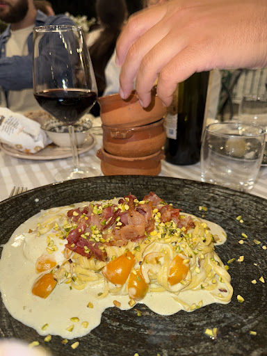 However, once seated, my company and I both I ordered the Tagliolini Con Pistacchio E Pancetta (me without the pancetta that comes with it) and weâre pleasantly surprised by its flavor. The creamy pistachio sauce added a unique twist to the dish, and the quality of the ingredients was evident. Although the portion initially looked a bit small it was perfectly filling thanks to it rich sauce.