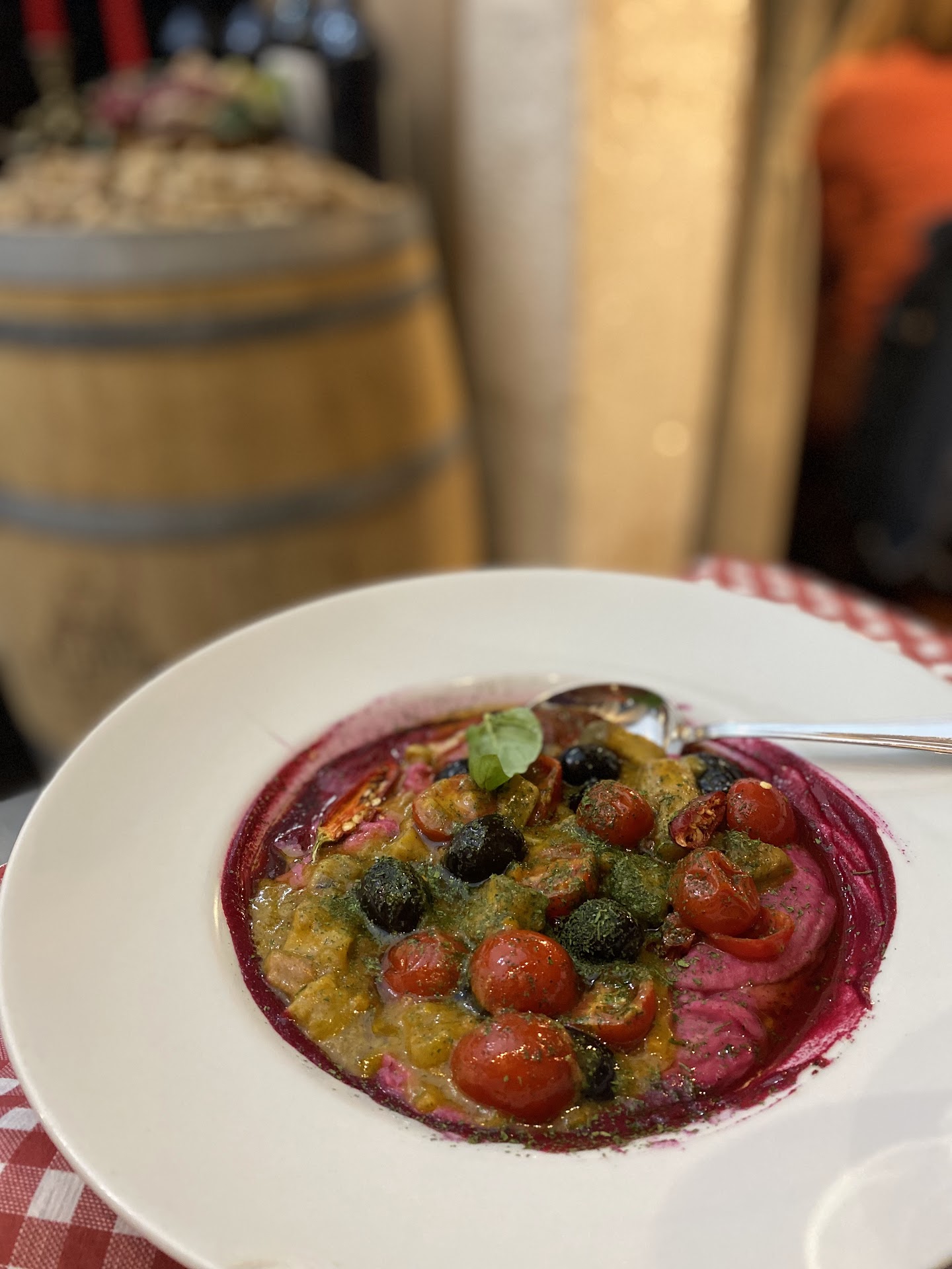 Our first dish was an antipasto that had sun dried tomatoes, local cheese, and randomly grapes. The grapes made us cry! It was so good and unlike anything we have ever tasted. I got the brasciole which seemed like a bad idea with the heat. It was one of the best dishes I have ever tasted. The sauce was so smooth and rich. I still cannot stop thinking about it. My wife had the orecchiette with a red sauce. You can tell someone had just made the orecchiette fresh. Wowww!