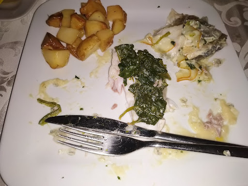 Read moreA seabass filet with bones and uncleaned skin with scales rolled around some spinach. The fish scales on the inside of this misery package made it a really unpleasant bite. There was no seasoning to hide that the fish wasn't fresh and the fries were pretty salty (I would not have ordered those if the menu or staff had mentioned there were patatos with the meal).