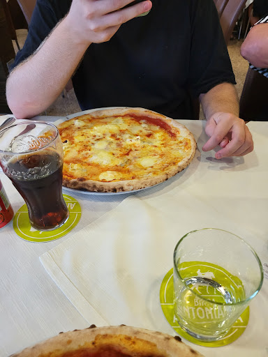 Ho mangiato qui la pizza con la mia famiglia ieri sera. Avevamo prenotato e ci siamo seduti fuori dato che c'è la possibilità di cenare o in galleria all'aperto o dentro con l'aria condizionata, ma dopo aver passato una giornata in casa per il troppo caldo (35/36 C) avevo voglia di prendere un po d'aria. Sarà che siamo arrivati nel momento clou della serata e prima di noi dentro c'era un tavolone enorme da servire (un compleanno, forse), sarà per il poco personale in cucina e/o la poca organizzazione, ma sta il fatto che siamo arrivati alle 20.20 in pizzeria e ci hanno portato la pizza un'ora dopo! Avevamo mangiato tutti i grissini e bevuto quanto avevamo ordinato da bere (che per altro ci hanno servito dopo almeno 20 min). Quando sono arrivate le nostre pizze la mia era abbastanza bruciacchiata per cui ne ho lasciata lì più di 1/4: non ho reclamato, anche se ero tentata, per timore di dover attendere un'altra mezz'ora prima di vedere una nuova pizza. Abbiamo preso una margherita, una rucola-grana e una romana, quindi pizze classiche. Il menù prevedeva anche delle specialità del periodo ma mi sembravano un po' care (10 euro) per cui ho preferito rimanere sul tradizionale . Le pizze a sentire dei miei familiari e a parte la mia per i motivi suddetti, sono buone. Il servizio al tavolo come ho scritto è lentissimo e al costo di 2 euro ti ritrovi una tovagliolino di carta, che dopo due passate, è già da buttare: mi aspetterei per questo costo almeno un tovagliolo di stoffa o uno in tessuto-non tessuto! In compenso il conto è arrivato quasi subito dopo che l'abbiamo richiesto. Non so se...