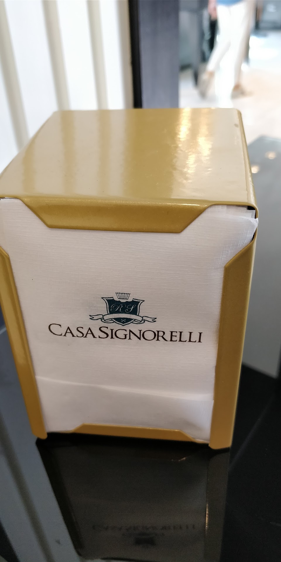 Read moreCasa Signorelli: sorprendentemente alta qualità! Anche oggi abbiamo gustato un delizioso aperitivo tra le 18:00 e le 19:00. Il piano di sotto è piacevole, ma il piano di sopra è un'oasi di piacere. Tutto ha bisogno di attenzione. Gli interni (che cambiano stagionalmente) sono estremamente eleganti. Niente è/è lasciato al caso. L'atmosfera è fantastica e ti fa sentire come se fossi in un bellissimo salotto. Lo chef è sempre presente ed è chiaramente colui che mette l'impronta su questo ottimo ristorante, ma anche tutti gli altri dipendenti sono vestiti con stile, professionali, disponibili e cordiali. Vado in molti posti, ma questo posto per gustare un buon bicchiere di vino (Gewurtztraminer, ma ci sono molti altri bei vini e altre bevande nel menu) accompagnato da deliziosi snack fatti in casa, è uno dei nostri posti preferiti. I miei complimenti. Per favore continuate a questo livello elevato. E' molto apprezzato e rende sempre un po' speciale la visita ad Alessandria. Un saluto ea presto. Dirk...