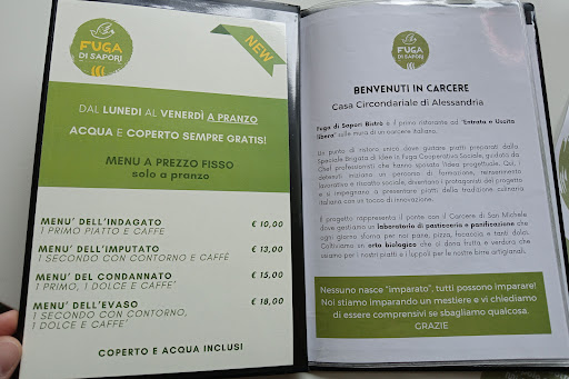 Fuga di sapori è un bistrot molto accogliente,con personale preparato e gentile. L' ho scelto per il pranzo della cresima di mia figlia che essendo celiaca ha esigenze particolari confronto alle altre persone. Lo chef ha preparato piatti che potessero andare bene sia per lei che per un' ospite intollerante all' lattosio. Cibo squisito e abbondante,pane fresco BUONISSIMO,prodotto direttamente dalla cooperativa fuga di sapori nel carcere di San Michele. In più hanno preparato tovagliette personalizzate con la data e la palla da rugby per mia figlia rugbysta. Lo consiglio per aperitivi o pranzi/cene....