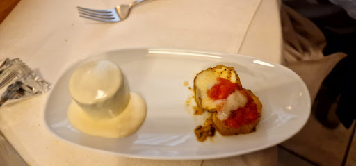 Read moreEsperienza non soddisfacente per il pranzo di ferragosto Avevo un ottimo ricordo di questo locale in passato ed era qualche anno che non ci andavo, non credo proprio ci tornerò perché sono stata molto delusa. A cominciare dalle porzioni Che potete tranquillamente vedere in foto (notare le dimensioni della forchetta! Appare gigante rispetto ai piatti) Poi il servizio, a cominciare dal fatto che dalla presa della comanda all'antipasto è passato tantissimo Con altre persone è stato molto più attento Mi è stato chiesto come mi ero trovata e ho espresso chiaramente che non ero particolarmente soddisfatta e i motivi della mia insoddisfazione Al check-out Mi aspettavo almeno qualche sorriso o un vago gesto gentile, invece se sono limitati a prendere i soldi distrattamente. Il cameriere gentile poi mi ha detto garbatamente arrivederci (ma è improbabile E pensare che dei rabatòn aveva un bel ricordo, e i formaggi erano invitanti) Nota di merito ai grissini Ottima la musica dal vivo almeno all'inizio (alla fine , beh...meglio non commentare) Mi aspettavo ogni antipasto singolarmente servito Invece è arrivato un piattino con su una manciatina di mini-gamberetti insipidi con una salsa che non ho gradito Il calamaro ripieno era buono ma un finger food (un boccone) La capasanta Poi è arrivato un piatto gigante 🙄 di pennette al salmone (vedi foto) Mi ha aiutato a passare la serata una lunga conversazione con l'AI a cui ho fatto vedere le foto e anche lei ha commentato il filetto che di Mediterraneo aveva poco, dadini di patate, poco pomodoro, olive e la pelle sotto, sapore poco gradevole Ancor più deludente il dessert (Mi è capitato di rado di non finirlo) Buono il vino Sedia poco comoda È triste quando ricordi di aver mangiato ottimamente e poi in una giornata di festa trovi quello che potete...