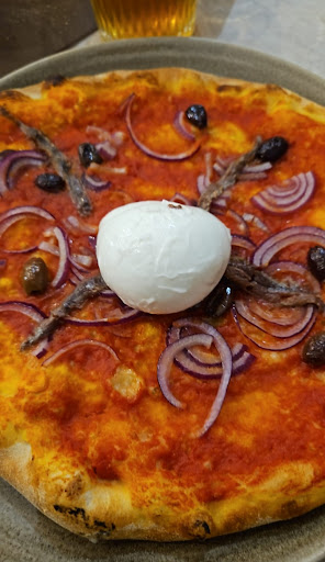 Read moreDiscreto perché? Perché come molti ristoranti. La maggior parte almeno. Hanno aspetti positivi e negativi. Inizio con i negativi. Con il fine di farvi leggere fino alla fine XD Gli aspetti più limpidi di questa negatività aimè. Sono il servizio notato da alcuni camerieri e purtroppo. Alcuni lati della pulizia. Il servizio. Ha avuto delle pecche da me subite. Perché durante il pasto. Il cameriere nel tentativo di servire chi avevo accanto. Ha giustamente posto il suo braccio sulla mia faccia. Questo mentre mangiavo. Una volta? No, a tutte le portate. Ultimo lato. Il modo in cui è stato servito il dolce. Piatto, e un cucchiaio enorme per mangiare dei bignè. Voi direte, be avranno avuto i cucchiaini a lavare. No. Perché subito dopo chi era al tavolo con me. Fu servito adeguatamente. Ma il punto non è questo. Il cucchiaio mi è stato portato al tavolo non sul piatto. Ma sbattuto sul tavolo stesso! Sulla tovaglietta? No, sul tavolo in legno. Personalmente ho trovato la cosa fuori luogo e indecente. Ultimo punto negativo, la pulizia. La molteplicità di ragnatele sopra la testa.. Lascia un po' a desiderare. Lati positivi. Il locale è di per sé bello, caldo, luminoso, cucina a vista, forno a vista. Possibilità di scegliere gli ingredienti della pizza stessa. O di scegliere quelle da loro proposte. L impasto della pizza è leggero. Al palato si sente e anche dopo.. Durante la digestione. Gli ingredienti sono di prima qualità. Gustosi e freschi. Consigliatissimo il calzone!! Primi piatti ben conditi e portate discrete. Rapporto qualità prezzo :prezzi sopra la norma per una pizza e anche per gli altri piatti, soprattutto i dolci! Un tortino 7€. Se però vogliamo considerarla gourmet, nella norma, ma non credo si possa. Consiglio se volete far bella figura con la vostra fanciulla o...