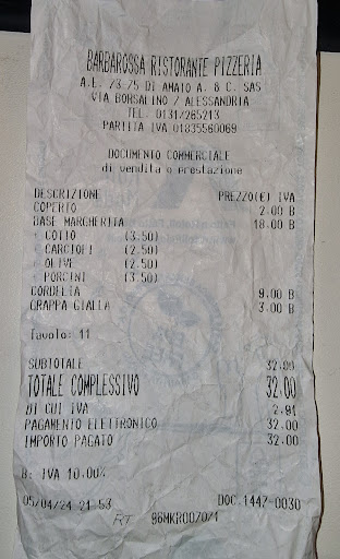 06/01/23: stasera avevo proprio voglia di un buon fritto misto in versione senza glutine ed ho rinunciato alla pizza. Un piatto gustoso e ben presentato. Gamberi, calamari e verdurine fritte, il tutto accompagnato da un buono vino bianco. E, per concludere, non poteva mancare il dessert, ho scelto una bavarese alle nocciole con cialda traforata al cioccolato . Proprio buona! Date un'occhiata alle foto. 18/11/22 Venerdì sera con alcuni amici, in buona parte celiaci come me, abbiamo deciso di ritrovarci ed andare a mangiare dal Barbarossa Bistrot in Alessandria. Sul menù si sceglie la "base" (normale, multicereali oppure senza glutine) e poi si selezionano i vari ingredienti per comporre la pizza a proprio piacere. A fianco di ciascun singolo ingrediente è riportato il prezzo in modo da poter valutare il costo finale della pizza, al quale va aggiunto il prezzo della base scelta. In alternativa ci sono 15 tipologie di pizze dette "le uniche" , una sorta di pizze gourmet, per le quali gli ingredienti sono immodificabili e si può solo variare la base. Io ho optato per una di queste pizze "uniche" con impasto senza glutine: la Picasso. È una pizza bianca con lardo, cipolle caramellate, toma e mozzarella. La trovo perfettamente bilanciata come sapori. Come dessert invece, pur essendomi ripromessa di fare la brava, non ho saputo resistere ad un cremoso con gianduia e zabaione con cialda di cioccolato. Servizio rapido e professionale come sempre (sono già stata in passato in questo ristorante - pizzeria) , ottima la qualità degli ingredienti usati. Il locale è anche ristorante e si mangia molto bene, quasi tutte le portate sono modificabili in versione gluten free su richiesta, ci sono anche alcuni piatti per vegetariani. I dessert sono invece tutti senza glutine. I prezzi? Alzarsi da tavola soddisfatta, mai appesantita, sapere di poter contare su un locale che sa come gestire la preparazione di pizze e piatti senza glutine e sicuri per i celiaci per me non ha prezzo. Quindi rapporto qualità - prezzo corretto a mio avviso. Note: locale e servizi accessibili alle persone su sedia a rotelle , nelle vicinanze ci sono alcuni posti auto a pagamento oppure a circa 50 metri si trova la grande piazza Garibaldi che è un parcheggio a pagamento. Non ricordo da che ora si possa parcheggiare...