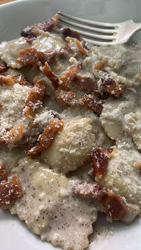 Read moreDavvero ottimo! Solitamente non prendono prenotazioni ma avendolo chiesto essendo con una persona anziana e una disabile ci hanno tenuto il tavolo senza problemi e con molta gentilezza, riservandoci il piano terra per evitare le scale. Ho messo però 4 stelle sull'ambiente perché per entrare c'è un gradino che non è segnalato e dopo aver comunicato la presenza di una persona disabile penso sarebbe stato importante almeno dircelo in quel momento. Al contempo però primo ristorante in cui non impazzisco per i rumori, era silenzioso, si riusciva a parlare tranquillamente, senza musica o vociare che solitamente mi impediscono di godermi la serata fuori. Il personale davvero molto gentile e disponibile. Il cibo ottimo, solo un paio di antipasti che erano "ok" ma tutto il resto molto buono. Io ho preso i ravioli con fonduta e che spettacolo! Per non parlare della cheesecake con tanti topping diversi che ti guarnisci tu, ho adorato Ultimo punto top il prezzo: antipasti, ravioli, dolce + acqua e 1 caraffa di vino, abbiamo speso circa...