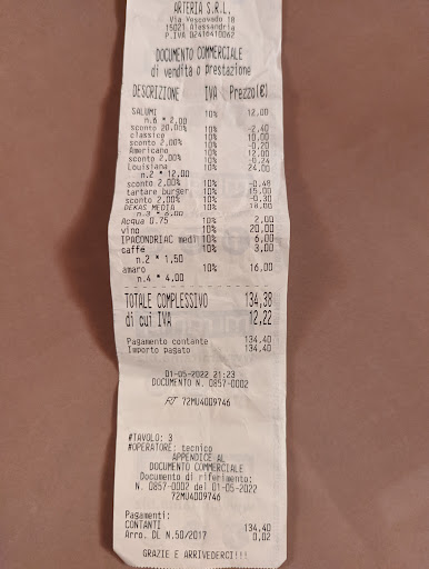 Read moreLocale posizionato in un cortile interno. Molto bello entrare e vedere luci appese e ombrelli sospesi in aria. Ma.. In primis abbiamo ordinato da bere. Non c'è una carta dei vini né delle Birre e in casa nn c'era molta scelta ( magari dovuta alla chiusura per mesi e mesi) Successivamente Abbiamo preso un tagliere e un tris e nel complesso era buono. Successivamente abbiamo preso una costata e li devo e dobbiamo dare un 2 aveva un gusto stranissimo ed era fredda, infatti ho poi preso un hamburger (langhe) e devo dire che era molto buono. Non abbiamo potuto mangiare nel il dolce e bere il caffè perché ha iniziato a piovere e nessuno c'ha chiedo di spostarci al coperto come stavano facendo gli altri commensali.. Nel complesso do un 3/5 consiglio di prendere panini...