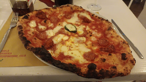 Recensisco dopo la seconda volta che vado, perché non sempre concordo sul recensire alla prima. In entrambi i casi abbiamo mangiato la pizza, ma il locale fa anche ristorante. La loro pizza tipo è quella con bordi alti, ma nel menu danno la possibilità di scegliere anche l'impasto sottile e diverse tipologie di impasto (diverse farine). Nello specifico noi abbiamo preso una pizza bordo alto, una sottile e una baby con menu’ che prevedeva delle aggiunte tipo le patatine fritte. Da bere invece una birra, acqua e caffè. Lascio 4 stelle perché la mia, seppur buona, era mezza sottile e mezza con bordo alto. La pizza comunque è buona e gli ingredienti sono freschi, nessun problema di digestione successivo. Ovviamente quella sottile risulta un po’ più grande di quella con bordi alti per ovvie ragioni, stesso impasto, una è più stesa dell’altra. Buone comunque in entrambi i modi. Rapporto qualità prezzo buono ma non ottimo, il costo delle pizze e’ un pelo caro, mentre il menù bimbi mi pare onesto. Lascio la foto dello scontrino. Il locale è posizionato in posizione strategica vicino al parco Bellavita, il cinema e altri servizi come la palestra e la piscina classica con vasche, quindi si presta a ottime combinazioni. Nelle immediate vicinanze c’è un grande parcheggio e quindi risulta molto comodo. Consiglio in combinazione con giornata relax al Bellavita, cena da rosso pomodoro e per finire, film al cinema, per una giornata di totale svago insieme ai propri cari/amici o anche da soli, e in un unico posto senza doversi muovere ogni volta...