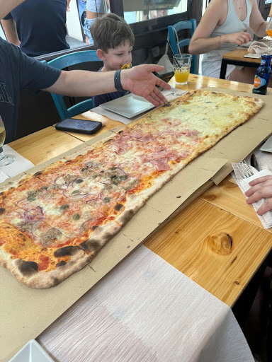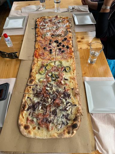 We discovered this location by chance. The restaurant offers antipasti, pizza and main dishes, all served by meter. Great for a large gathering. I admit that they have an attractive assortment of pizzas, and even though I came here twice, I still didn't want to experience anything else than pizza. The crust is thin and crispy, and the Martina pizza was our favorite. A minus would be that although we were 4 people at the table and we asked for a meter with 4 tastes, they hardly agreed to give us two half meters with two tastes each. This is because the menu is standard: half a meter pizza with 2 tastes for 2 people - and one meter pizza with 3 tastes for 4 people. Or maybe it was harder for us to get along with them because they didn't speak...