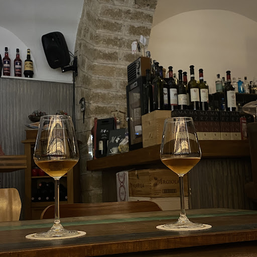 Read moreThis place is a MUST SEE when visiting the old town in Alghero. It is located in a pretty cobble stoned alley way and the building has a beautiful stone facade. There is no Drinks Menu as the host has an encyclopaedic knowledge of all the choices on offer. He brings samples of several wines from which patrons can choose their preference. After serving your drinks, Domenico will pass around platters of snacks, small slices of bread topped with mortadella, radish, aubergine, etc. We found the host hugely welcoming and passionate about his business. The atmosphere is wonderful with the alley way alight with fairy lights adding to the ambience. A must for an Avertivo...