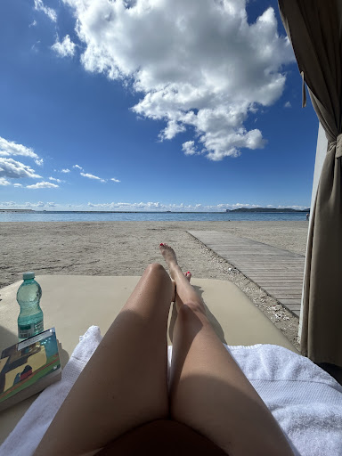 Read moreLocation is straight on the beach which is a big plus! Staff is really attentive to the customers and we have been treated really good! The restaurant itself is nice and quite spacious! We loved the first dish and the antipasti, both delicious! We had amberjack ceviche and tagliolini with pecorino cheese and dried fish bottarga. For the main course a disappointing beef combined with potatos which for my taste has been a disaster. The beef was not medium rare at all, as requested and the accompanying sauce and mayo was really heavy, not at all well balanced dish. It was to heavy for my taste but on the meniu it seemed to be really nice, something special according to the description! We loved both desserts, especially the tart with pistachio mouse, raspberry inside, salted caramel and sorbet on the side. Overall, the experience was not a bad one, partially a good and great one if we pick aside the awful beef maine dish. Go check it out at least for the location itself, the staff, the desert, antipasti...