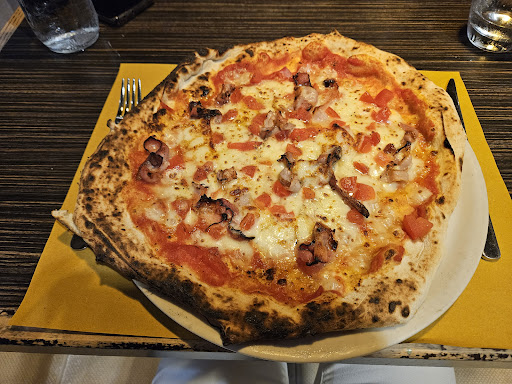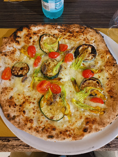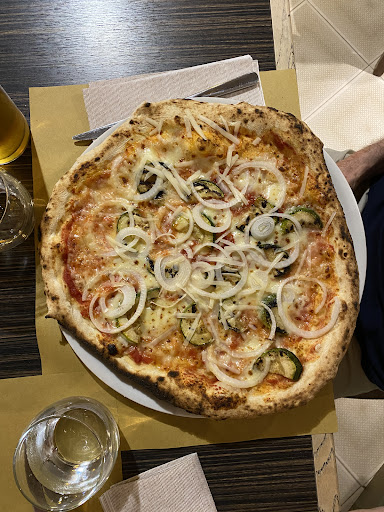 The pizzeria is not far from the center which is an advantage for not being overcrowded with tourists. A margherita €5, with onion €5.50 a very honest price (with extra toppings the prices could range from €5 to €10) considering it’s only less than 10 minutes’ walk from the centro storico. We had the pizza with zucchini, onion, and Parmesan cheese €7 and deep fried baccalà fritters with chickpea cream and sweet and sour red onion, they were both really delicious!!!The ambient and decorations are very cozy, both the owners are artists, you can enjoy some of his interesting paintings displayed on the walls!!!You can dine comfortably as there is also an outdoor tables available. Highly recommend...
