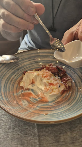 In short, we experienced: -No card machine working when we visited. -Dirty fork set out at our table, I had to ask it be changed. Only 2 measly prawns in the linguine dish -Lobster ragu was made only of shells with little to no meat -Wine was forgotten, we had to remind waiter, he then brought us the wrong bottle towards the END of our meal -Even then, bread came after the wine, moreover, bread bowl had (eaten?) crusts in it. -Granted it is outdoor seating, it was still not nice to see cockroches running around beneath the tables -To top it off, we were never offered dessert after our meal, not that we had any intention of spending more money in this disappointing tourist trap