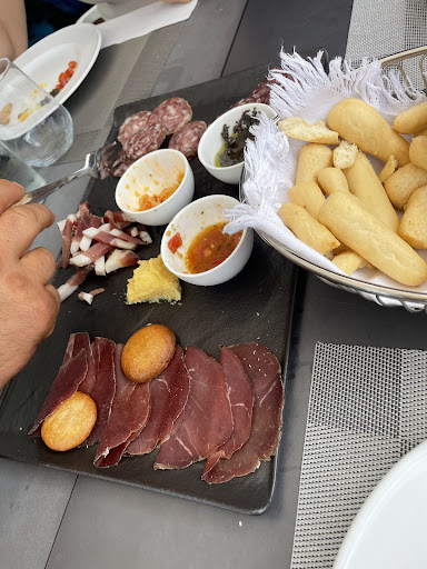 Read moreAbbiamo deciso di mangiare qui visto la bellissima posizione di questo ristorante. Purtroppo per me non è stata una bellissima esperienza. La posizione del ristorante è bellissima ,dalla terrazza si può ammirare il lago di Alleghe. Appena entrati il cameriere ci ha sistemato in terrazza, tavoli senza tovaglie e qui non ci siamo perché solo il coperto e 3,50 euro a persona, abbiamo ordinato due tagliere di affettati con formaggio e de arrivato uno solo affettatati senza formaggio, 16 euro il tagliere e cioè 32 per 2 taglieri, e dalla foto si vede la scarsa quantità , qualità mediocre visto che lavoro in un banco gastronomico,nessuna ombra di formaggio. Il cestino del pane con 3 fette di pane e pane macchiato di rosso penso che non hanno pulito il coltello dopo che hanno tagliato la pizza, eravamo in 4 e ovviamente il pane non bastava ho chiesto 3 volte il pane e finalmente la terza volta hanno portato un altro cestino . Ho chiesto gentilmente come mai sul menù c’era anche dei formaggi sul tagliere e in vece a noi non hanno portato il formaggio, mi ha risposto che si sono dimenticati anzi quasi non credeva . Formaggi deludenti . Dalla foto di vede come li hanno portati buttati un po sul piatto, non penso proprio che fontal sia un formaggio da antipasto , insomma una delusione totale. Poi è arrivato il secondo, delusione assoluta, funghi insipidi totalmente, braciola di capriolo con mirtillo mirtilli gusto dolce che non si sposava nemmeno con la polenta che a mio parere era l’unica che era buonissima. E tutto alla bellezza di 25 euro. Insomma con 2 bottiglie di acqua una birra ,2 taglieri e 4 secondi e 4 coperti abbiamo spesso 158 euro a mio parere veramente esagerato.Servizio inesistente. Non tornerà mai peccato per la vista sul lago e...