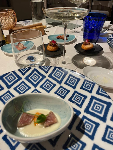 la qualità delle materie prime - Fin dell'aperitivo che ti portano appena ti siedi, puoi percepire che gli ingredienti che usano sono in altissima qualità. Sapori che ti trasmettono una elevata genuinità e sicurezza; il modo in cui valorizzano queste materie prime - Si vede nell'immediato che la cucina non scherza: gli stuzzichini che ti portano quando ordini sono preparazioni molto semplici ma allo stesso momento complesse, riescono a farti assaporare i piatti senza bombardarli di altri ingredienti. una semplicità, però, ricerca e studiata che ti lascia senza parole; gli abbinamenti - C'è poco da fare, i piatti presentano abbinamenti alla materia prima principale che la esaltano all'ennesima potenza. ti fanno capire che lo chef non scherza, lui ama la cucina e strasmette questo amore per il suo lavoro plasmandolo in delle creazioni favolose; il servizio - Il servizio è degno di un ristorante marchiato dalla Michelin: eleganza naturale, non forzata dallo spessore del nome del locale. la maitre fin da subito ti fa sentire a tuo agio e trasmette tranquillità con il sorriso. il personale di sala molto bravo e alla mano, degno della stella; Ambiente rilassato e piacevole, il ristorante è molto fresco e luminoso, pulitissimo e curato. l'aria che si respira è pari a quella che si può trovare in casa e non viene appesantita dallo spessore del locale;