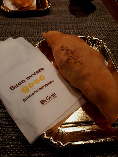Read moreMi sono recato presso la Di Gesù Bakery in una fredda sera di febbraio, per assaporare il panzerotto con ripieno di braciole e il celeberrimo pane di Altamura, dopo aver visto questi pubblicizzati in un programma televisivo. Il locale risulta molto moderno, pulito e visivamente accattivante, in una zona piuttosto centrale del paese. Ho apprezzato il sapore sia dei panzerotti che delle pizze farcite; non ho avuto purtroppo l'occasione di gustare i dolci. Personalmente non condivido l'idea -seppur legale- di esporre i prezzi su un listino posto al fondo del bancone (e non sul bancone stesso), in quanto questo rischia di disorientare il cliente. Il prezzo di alcuni prodotti (come i panzerotti) mi è sembrato eccessivo. Mi è stato inoltre addebitato -cosa poco onesta- il costo del coperto, pur non avendo fruito del servizio al tavolo nè tantomeno di posate. La cosa che non ho per nulla gradito è stata la mancata propensione al saluto, sia delle addette che del titolare, anch'esso dietro al bancone: all'uscita nessuno ha ricambiato il mio saluto. Nel complesso consiglio la visita e apprezzo l'impostazione del locale, ma i margini di miglioramento sono ampi, e un po' di modestia non guasterebbe: penso che ad Altamura ci siano altri locali che meritino di essere...
