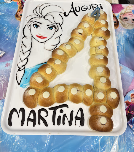 Sotto consiglio della ludoteca dove ho poi festeggiato il compleanno di mia figlia, mi reco per la prima volta in questo panificio per ordinare una torta di pagnottelle dolci a forma di numero con decoro a tema Elsa da far mangiare ai bimbi. Onestamente il prezzo di riferimento era 25,00 euro per 25 pagnottelle, questo sia per telefono che al momento dell’ordinazione. Al momento di ritirare la torta il costo è salito a 31,00 euro… La Torta è molto bella e la consiglio ma avrei gradito più trasparenza nello spiegarmi il relativo costo maggiorato, cosa che non è successo. Per quanto mi riguarda può aver trattenuto una caparra per il vassoio mai più restituita, o può tranquillamente essersi sbagliata o aver applicato un sovrapprezzo per il decoro e ci stava pure ma andava specificato meglio. Consiglio...
