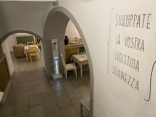 In un'estate funestata dagli scontrini e dai prezzi selvaggi di molte località pugliesi, spiccano interessanti realtà fuori dal coro, come questa osteria scoperta per caso. Un po' nascosta in mezzo alle stradine del centro storico, a ridosso della cattedrale, si è rivelata uno scrigno di VERI, autentici sapori della tradizione. Essendo stata a cena, non ho potuto esagerare con le portate e ho scelto di provare solo i piatti caratteristici di questa zona. Dopo una ciotolina di olive offerte dalla casa e una soddisfacente degustazione di sformati di verdure (finocchio, carciofi, zucchine e spinaci), ho assaporato uno stufato di pecora con le cipolle e delle brasciole di asino, con contorno di patate al forno, davvero degni di nota. Il solo profumo è bastato a catapultarmi indietro negli anni, quando da bambina, soprattutto di domenica, mi aggiravo per le cucine delle mie nonne riempiendomi il naso di profumi di una cucina tanto semplice quanto saporita. Tenete conto che sia la pecora che l'asino non sono carni facili da preparare, per la loro consistenza e per il sapore particolare. In questa osteria le pietanze sono risultate perfette, tanto da meritare un bell'intingolo finale con delle generose fette di pane (rigorosamente di Altamura, ovviamente). Ho accompagnato il tutto con un BUON vino rosso della casa e ho concluso la cena con una porzione cheesecake e un amaro. Posizionata leggermente sotto il livello stradale (l'ingresso presenta alcuni scalini), l'osteria si compone di diverse salette arredate in modo semplice e grazioso, la cui atmosfera raccolta ispira convivialità e tranquillità. Il personale è giovane e preparato (per la prima volta dopo tanto, ho sentito ragazzi parlare inglese con turisti stranieri!) e, soprattutto, molto cortese e disponibile. I bagni puliti e forniti di tutto. Mi sono ripromessa di tornare ancora per assaggiare altri piatti. Tanti complimenti a chi gestisce e ad uno staff che fa davvero la...