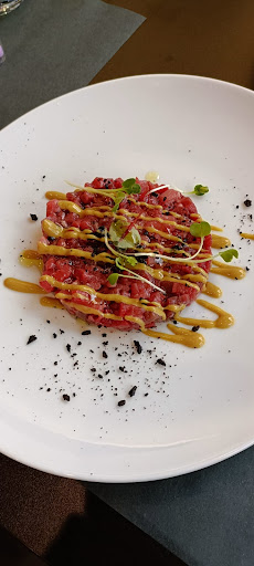 La mia ragazza, che voleva anche lei il burger, ha suggerito alla cameriera di aggiungere solo il pulled pork (del burger Oste) al posto dell'hamburger terminato. Quando sono arrivati i piatti, gli antipasti erano mediocri, il sushi di carne molto deludente, privo di gusti distintivi. Il burger della mia ragazza conteneva una quantità minima di pulled pork, con abbondanza di condimenti e un pane eccessivamente croccante. Il dolce, nella media, non ha risollevato la serata.