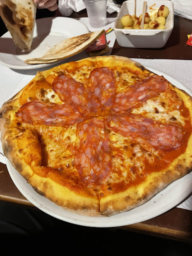 Attesa oltre 40 minuti per pizze e altre portate con locale pieno. scarsa luminosità, le foto sono fatte con luce naturale ed era quasi difficile leggere il menù. Nessuna musica che apprezzo ma essendo all'aperto qualcuno che fumava ignorando il fatto che non si possa fare. Il servizio si perde per strada qualche richiesta fuori linea. Le pizze sono ben farcite ma fatte con la classica base pizza che si può trovare al supermercato. qualità bassa e prezzi bassi , ( esempio margherita 3.50€). bicchieri e bottiglie di plastica che non vedevo da un po'. Consigliato se si vuole...